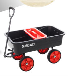 SHERLOCK Home Use Black 45L Steel Tray CartProduct Code BBGC45Key Features:•Tray 45 Litre durable Snag-Free Steel tray •Wheel Standard 10” X 3.5” Pneumatic Wheels on Steel Rims•Handles Powder coated steel handle•FrameRobust powder coated steel frame•Other Easy assemblyThe ideal cart for all your DIY or garden work.