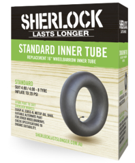 Standard Wheelbarrow Inner TubeProduct Code: MW2TUBU•Standard 4.80/4.00 - 8•Replacement wheelbarrow inner tube•Inflate to 20 PSI•Installation instructions on packaging•Spare part to suit SHERLOCK models SS85P-N, SS85S-N, NB75P-BU, SH46•Suitable alternate part for other wheelbarrows •Check specifications to ensure suitability