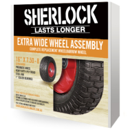 Extra Wide Wheelbarrow Wheel Assembly Product Code: SHW7BU•Extra Wide 16” x 7.50 - 8•4 ply Pneumatic Tyre with Heavy Duty tread•Steel Rim with 1” sealed bearings•Complete replacement wheelbarrow wheel•Spare part to suit SHERLOCK models BU51P-W and BU51S-W