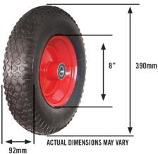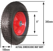 Standard Flat Free Wheelbarrow Wheel AssemblyProduct Code: SHW45PUBU•Standard 4.80/4.00 - 8•Solid Polyurethane Tyre with Heavy Duty Steel Rim•1” Sealed Bearings•Puncture resistant•Complete replacement wheelbarrow wheel•Spare part to suit Sherlock models SS85P-N, SS85S-N, NB75P-BU, SH46