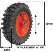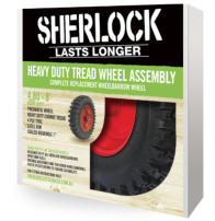 Heavy Duty Tread Wheelbarrow Wheel AssemblyProduct Code: SHW45HDBU•Heavy Duty 4.80/4.00-8•4 ply Pneumatic Tyre with Heavy Duty Chunky Tread•Steel Rim with 1” sealed bearings•Complete replacement wheelbarrow wheel•Spare part to suit all Sherlock models