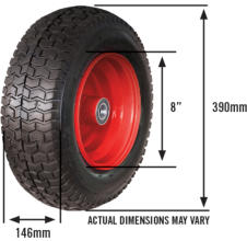 Standard Wheelbarrow Tyre Product Code:MW2TYBU•Standard 4.80/4.00 - 8•4 ply Pneumatic Tyre with Heavy Duty tread•Installation instructions on packaging•Spare part to suit Sherlock models SS85P-N, SS85S-N, NB75P-BU, SH46•Suitable alternate part for other wheelbarrows. Check specifications to ensure suitability