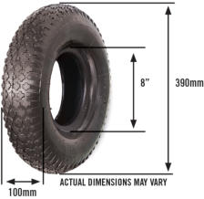 Standard Wheelbarrow Tyre Product Code:MW2TYBU•Standard 4.80/4.00 - 8•4 ply Pneumatic Tyre with Heavy Duty tread•Installation instructions on packaging•Spare part to suit SHERLOCK models SS85P-N, SS85S-N, NB75P-BU, SH46•Suitable alternate part for other wheelbarrows •Check specifications to ensure suitability